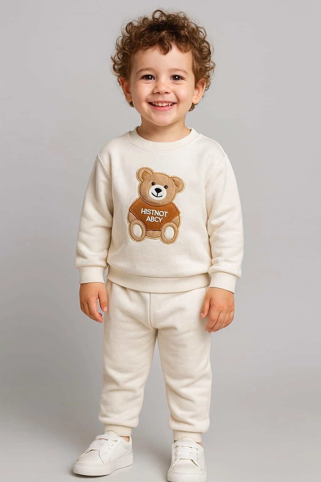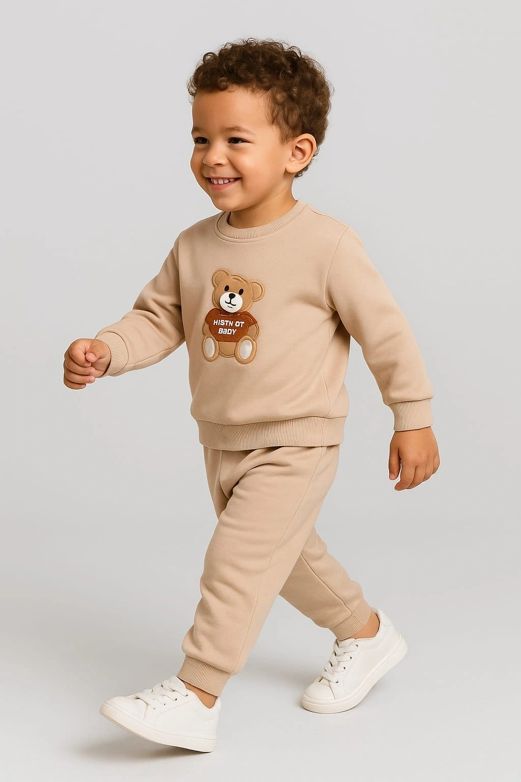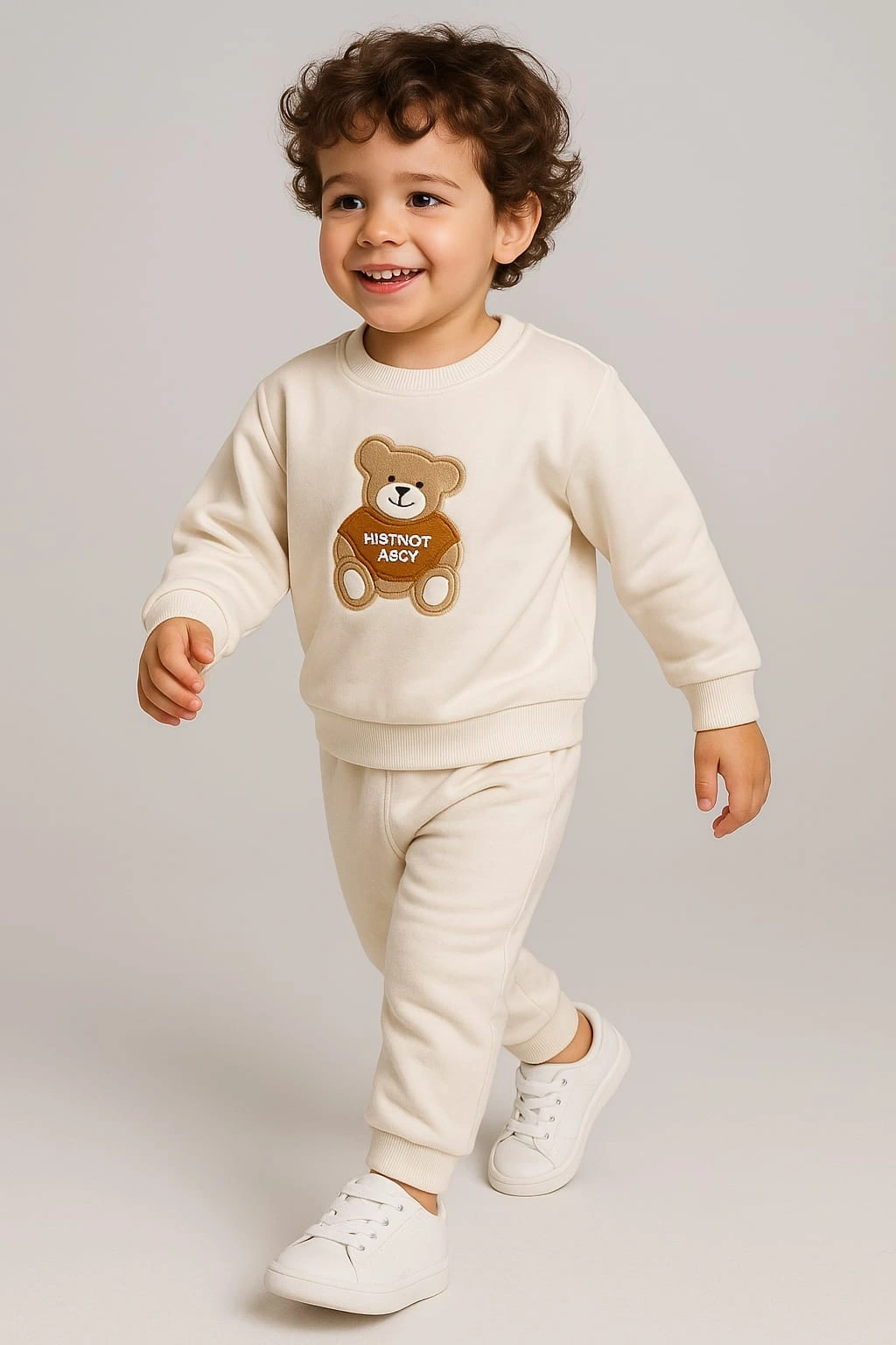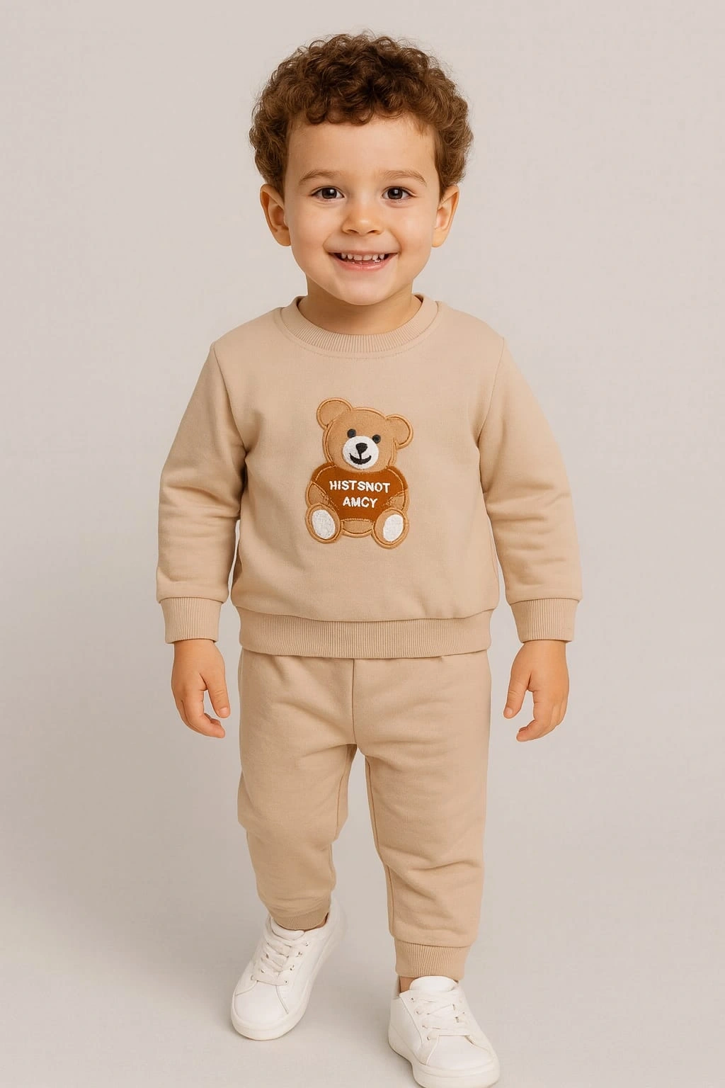 Miniklerin günlük konforu düşünülerek tasarlanan bu eşofman takımı, yumuşak dokulu kumaşı sayesinde hassas ciltlere uygundur. Üst kısmındaki sevimli nakış detayı, kombinlere tatlı bir hava katar. Esnek paça ve bilek yapısı sayesinde hareket özgürlüğü sunar.