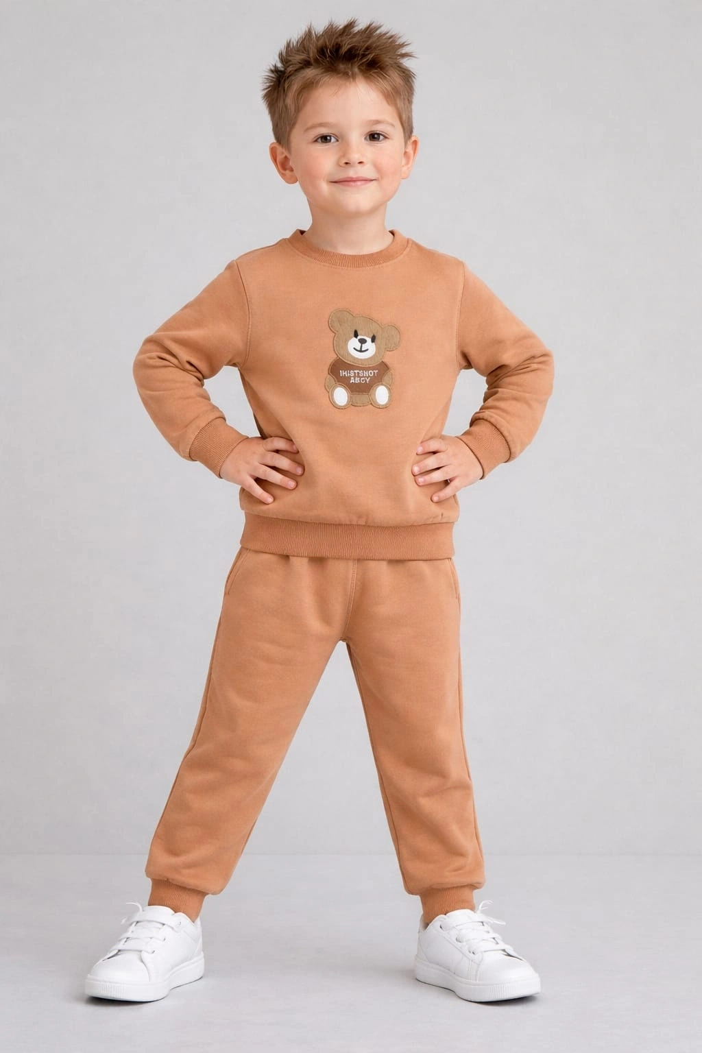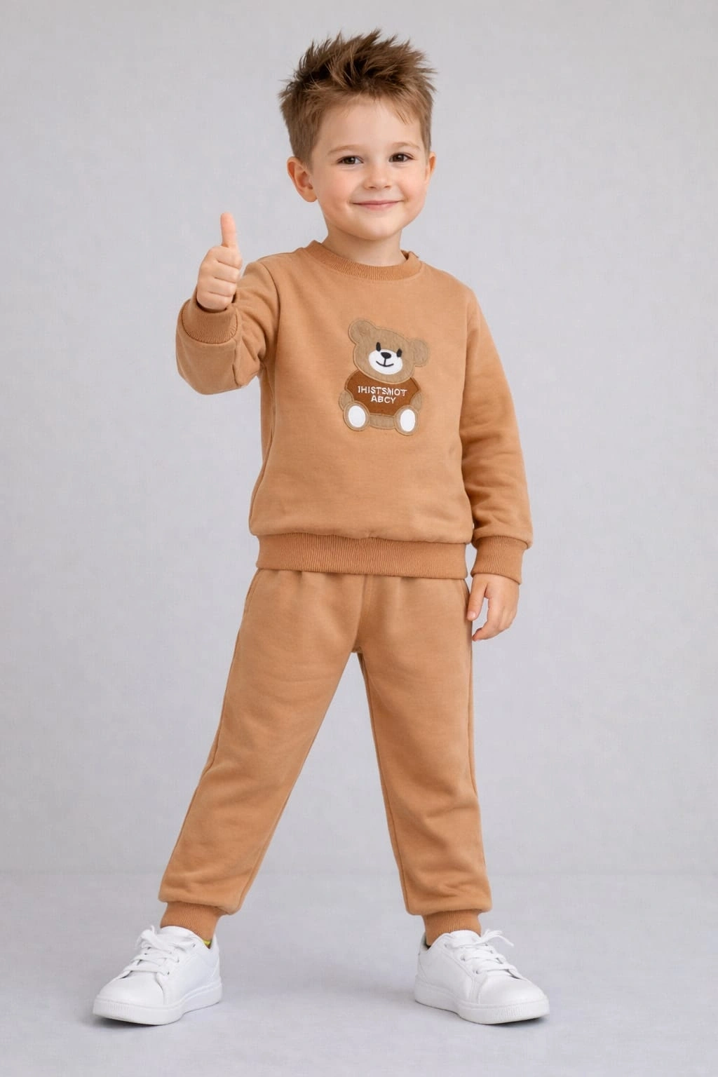 Erkek çocuklar için tasarlanan bu eşofman takımı, konforlu yapısı ve şık görünümüyle günlük kullanım için idealdir. %100 pamuk 2 ip kumaştan üretilmiş olup yumuşak dokusu sayesinde ciltle uyumlu ve nefes alabilen bir yapı sunar.