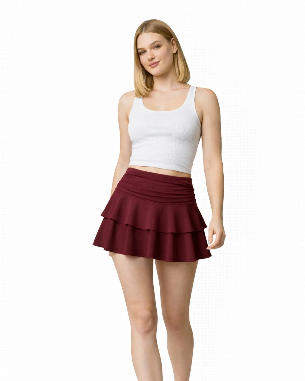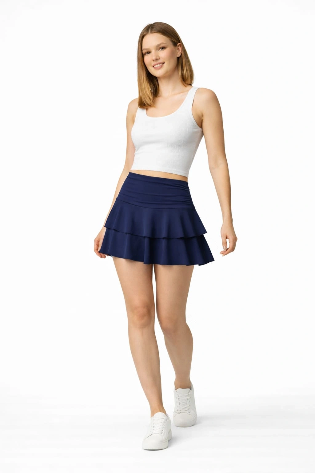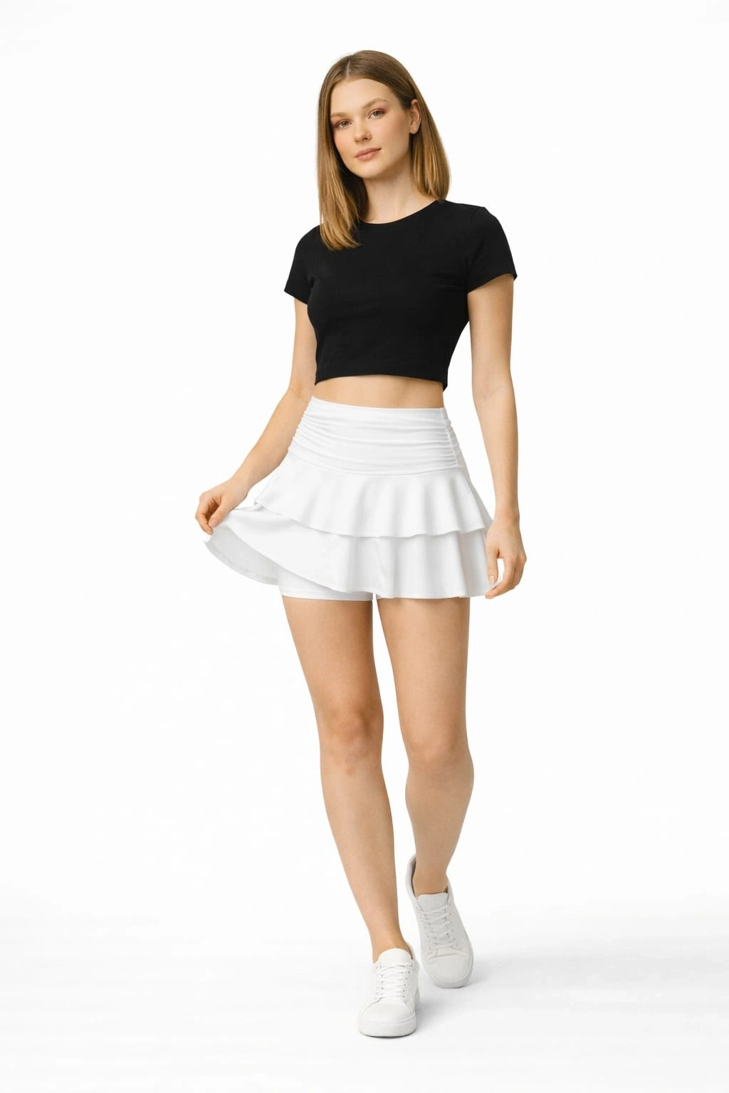 Şıklık ve rahatlığı bir arada sunan bu kat kat fırfır detaylı şort etek, günlük stiline hareket ve enerji katmak isteyenler için özel olarak tasarlanmıştır. Modern kesimi sayesinde vücuda zarif bir şekilde otururken, iç kısmındaki şort yapısı gün boyu konforlu ve güvenli bir kullanım sağlar. Etek görünümünün feminen duruşu ile şortun pratikliği birleşerek hem sportif hem de şık kombinler oluşturmanıza olanak tanır.