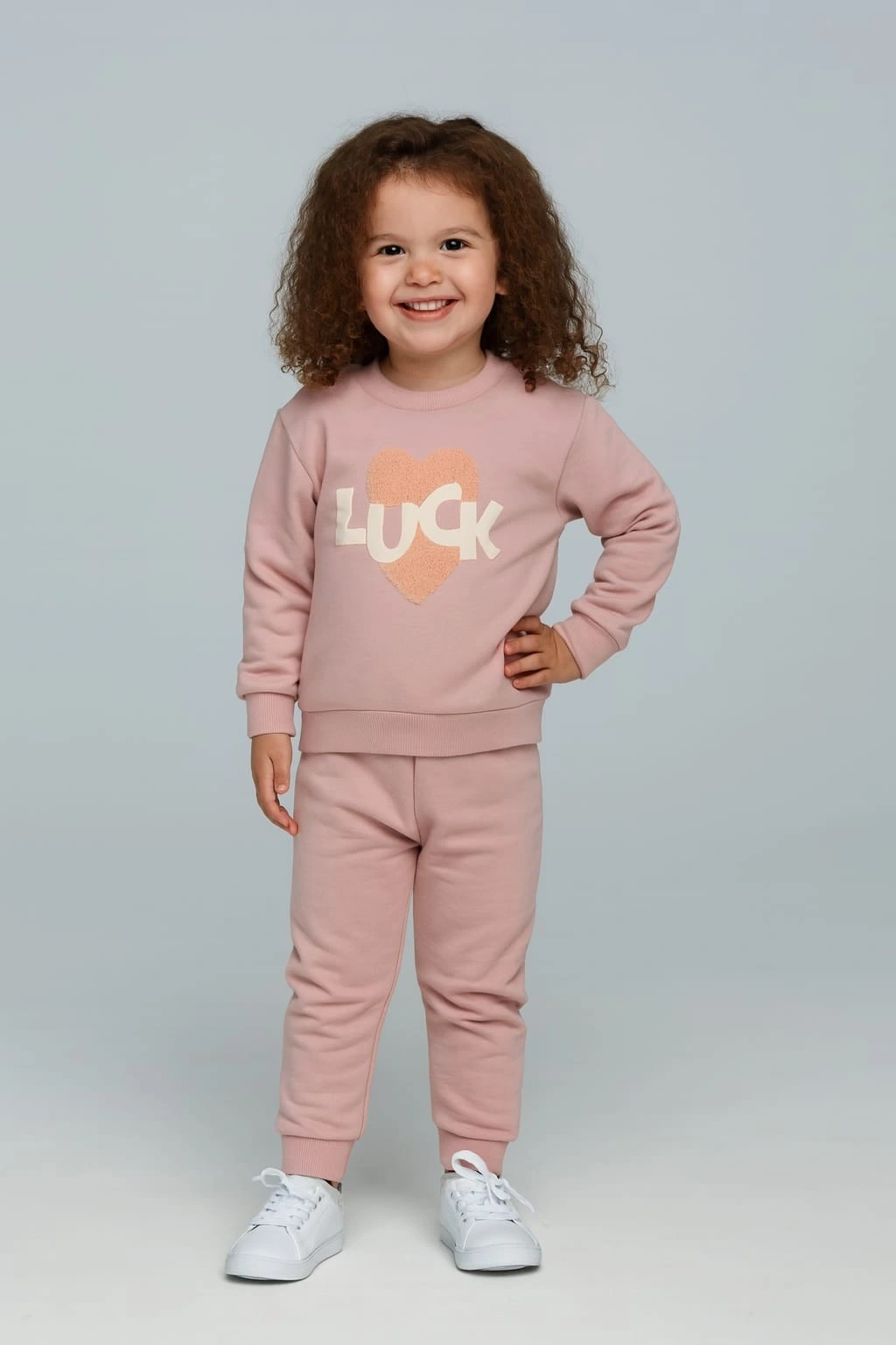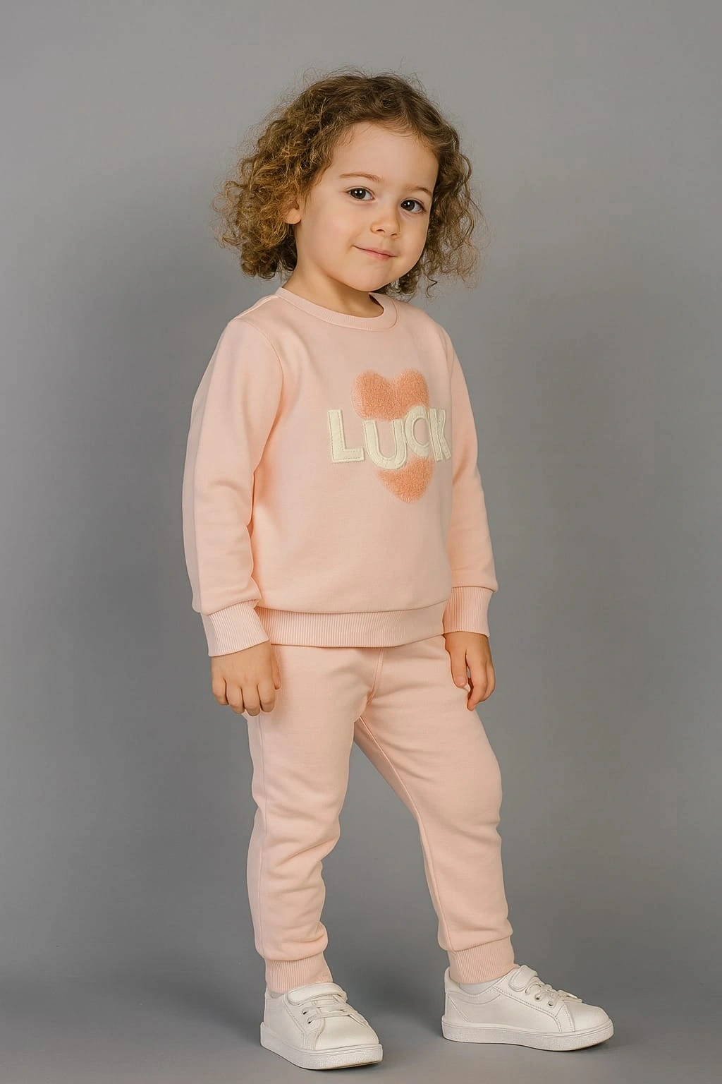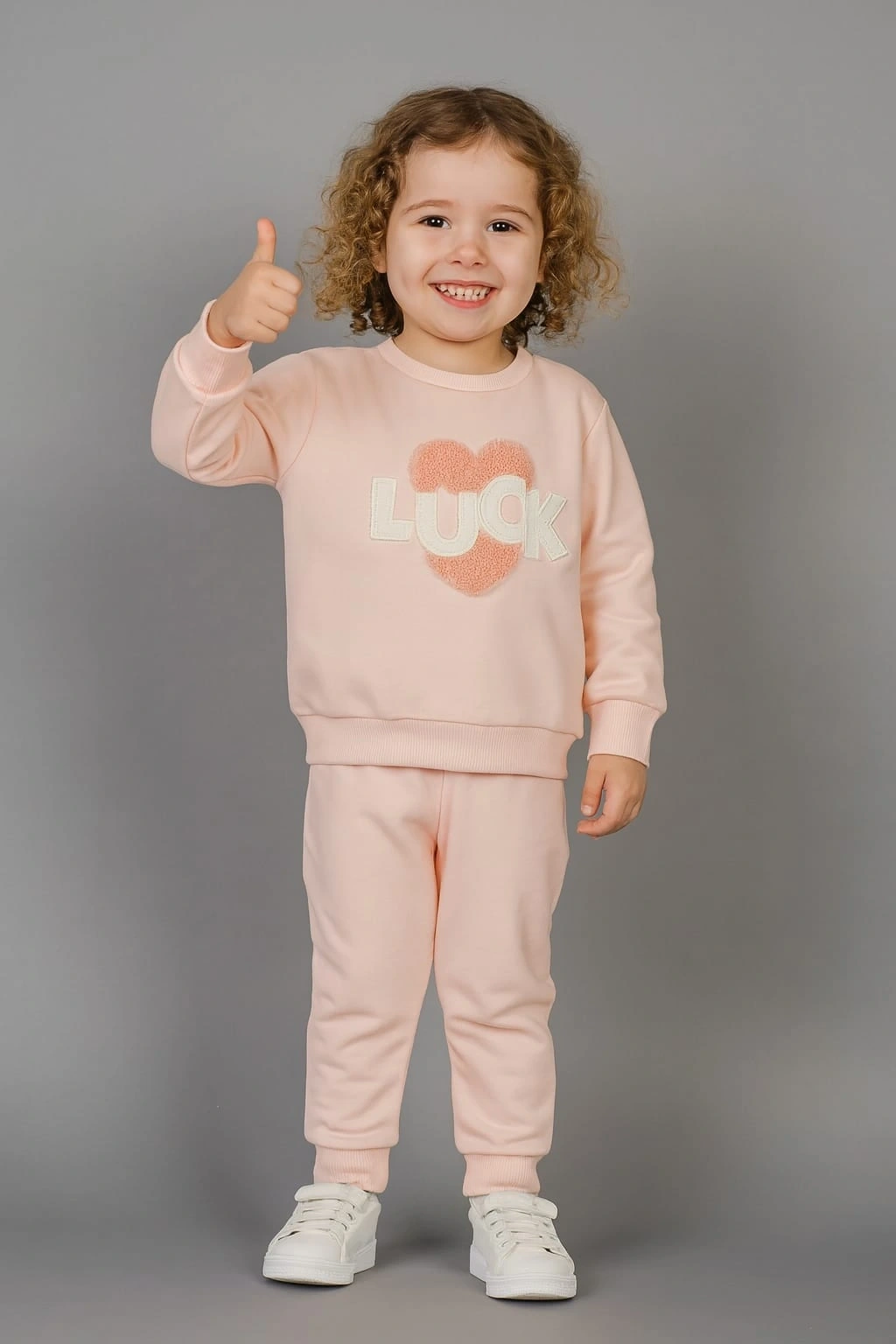 Miniklerin rahatlığı ve sevimliliği için tasarlanan bu eşofman takımı, %100 pamuk kumaşıyla yumuşacık bir dokunuş sunar. Günlük kullanım için ideal olan takım; esnek yapısı sayesinde hareket özgürlüğü sağlar. Üst kısmında yer alan kalp detayı ve “LUCK” yazısı, tasarıma modern bir dokunuş katarken alt kısmın sade formu kombin bütünlüğü oluşturur. Nefes alan kumaşıyla cilt dostudur, terletmez ve dört mevsim kullanılabilir.